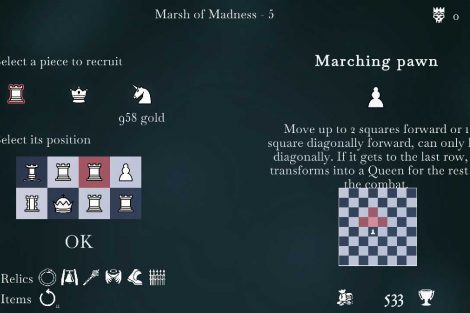 เกมโร๊คไลค์ที่ใช้หมากรุกไม่ใช่สิ่งที่คุณเจอทุกวัน แต่เกมนี้ดึงดูดความสนใจของฉันได้อย่างแน่นอน รูปแบบการเล่นทำให้คุณคิด แต่ในขณะเดียวกันก็ให้ผลตอบแทนที่คุ้มค่ามาก เป็นการผสมผสานระหว่างกลยุทธ์และโชคที่จะทำให้คุณนั่งไม่ติดเก้าอี้ ฉันชอบแง่มุมเทิร์นเบสของเกมเป็นพิเศษ ซึ่งเพิ่มความลึกให้กับการเล่นเกม กลไกนั้นง่ายต่อการเรียนรู้และมีความลึกในเกมให้สำรวจ