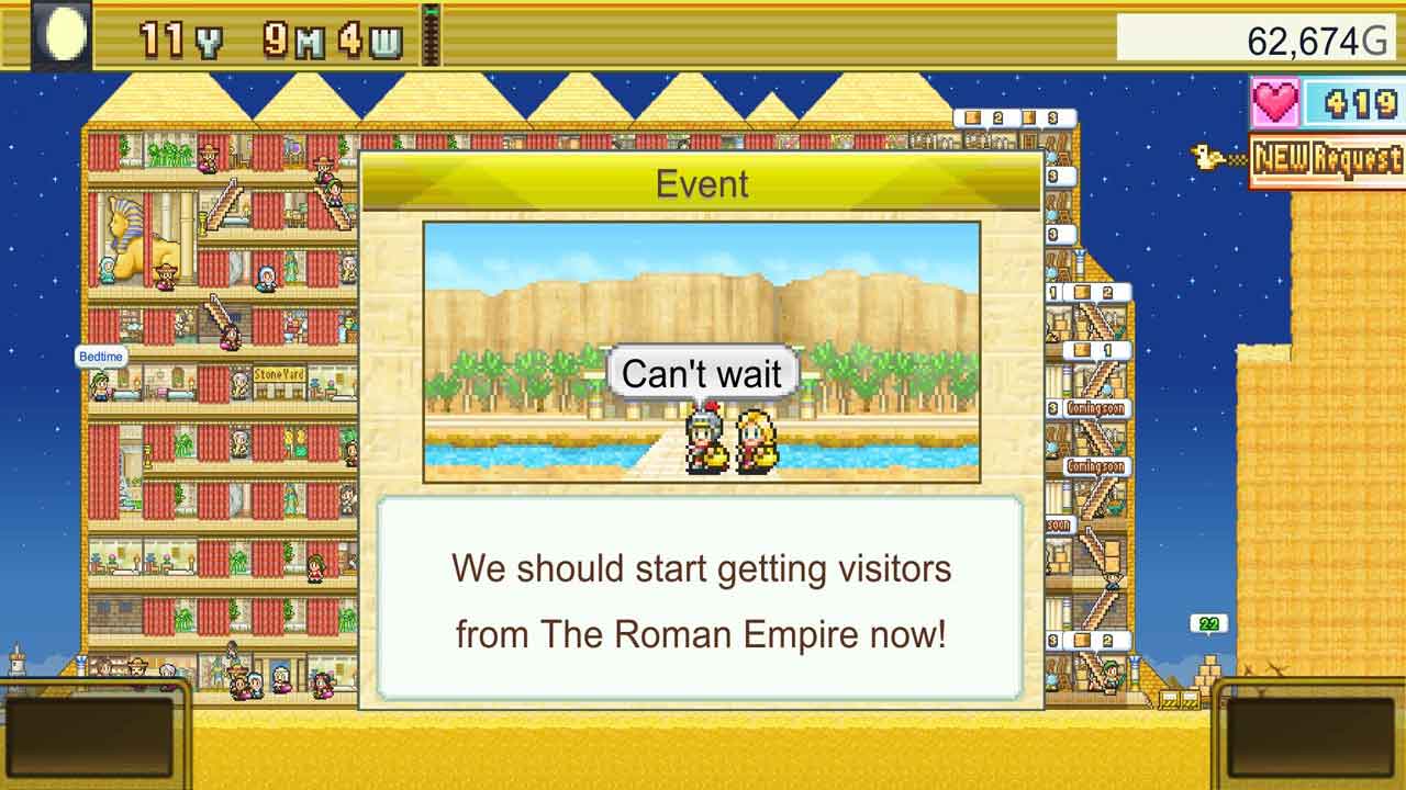 ร้านค้าจำเป็นต้องมีคนดูแลจัดการอย่างหลีกเลี่ยงไม่ได้ และงานเฉพาะทางต้องดำเนินการโดยบุคลากรที่มีความเชี่ยวชาญเฉพาะด้าน ลักษณะเฉพาะของพนักงานในเกมส่งผลต่อประสิทธิภาพของห้างสรรพสินค้าอย่างมาก ดังนั้นการคัดเลือกพนักงานอย่างรอบคอบจึงมีความสำคัญอย่างยิ่ง เนื่องจากนี่คือห้างสรรพสินค้าสำหรับนักท่องเที่ยวที่ผสมผสานการช้อปปิ้งและการท่องเที่ยว ยิ่งพีระมิดของเรามีชื่อเสียงมากเท่าไหร่ ก็จะยิ่งมีนักท่องเที่ยวเข้ามาเยี่ยมชมและจับจ่ายซื้อของมากขึ้นเท่านั้น เมื่อรายได้ของเราเพิ่มขึ้น เราสามารถสร้างพีระมิดให้ใหญ่ขึ้นและอลังการยิ่งขึ้น และในที่สุดก็ทำให้พีระมิดมีชื่อเสียงมากที่สุด