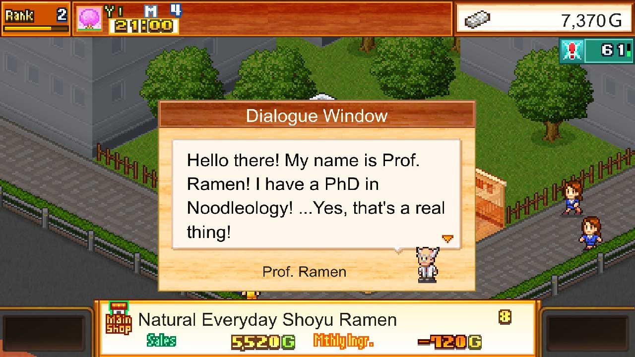 Ramen Sensei เป็นหนึ่งในเกมที่ลึกที่สุดในซีรีส์ที่ฉันเคยเล่นมา นี่คือเกมธุรกิจเกี่ยวกับการเป็นเจ้าของร้านราเมน (อาหารญี่ปุ่นประเภทหนึ่งที่มักทำจากบะหมี่) และทำให้ร้านนี้เป็นร้านที่ดีที่สุด คุณต้องจ้างและฝึกอบรมพนักงานในขณะที่ลองสูตรอาหารเพื่อค้นหาคนที่ลูกค้าของคุณจะชื่นชอบ