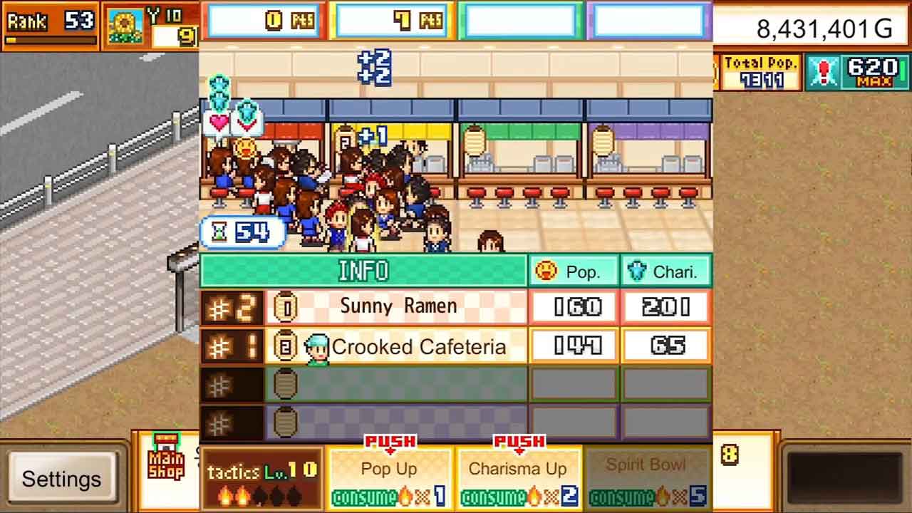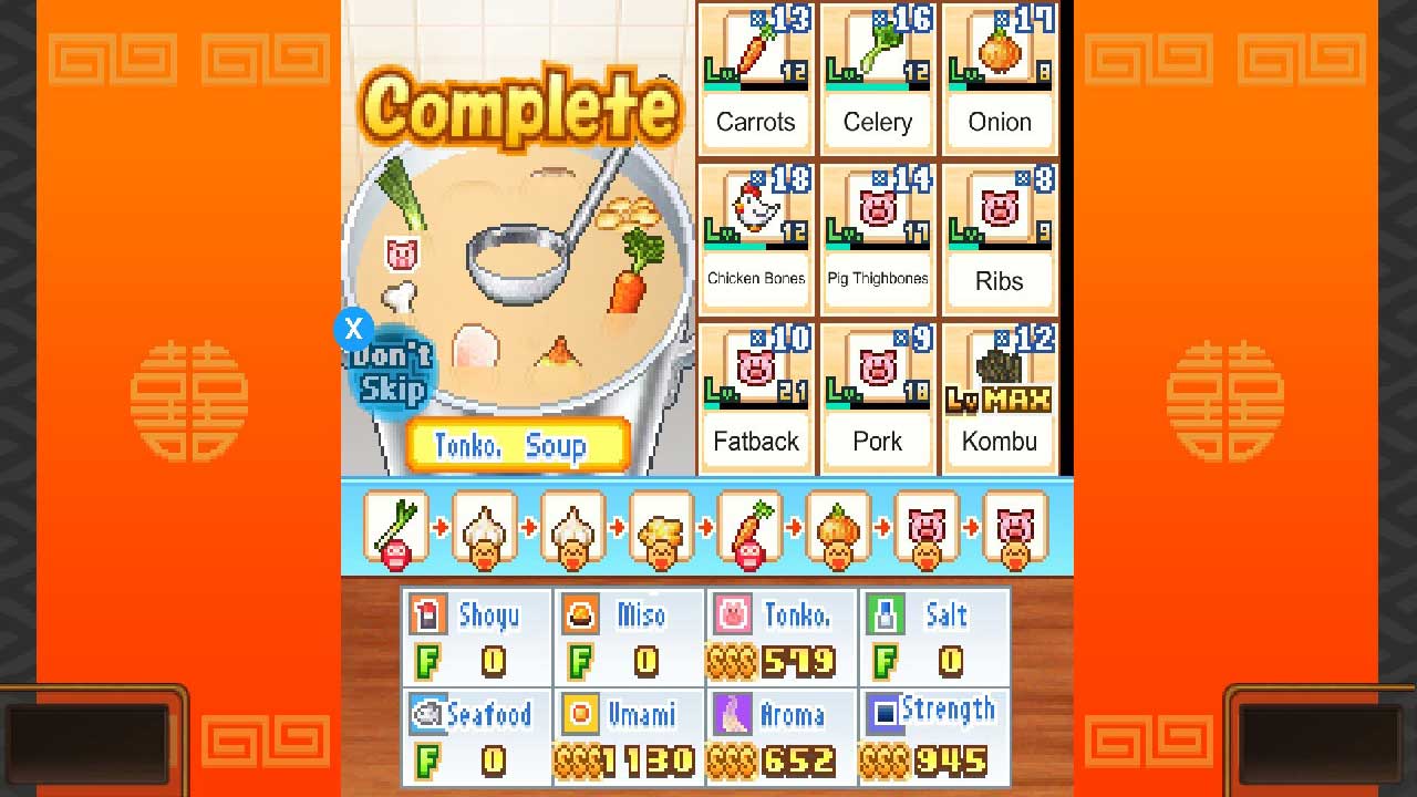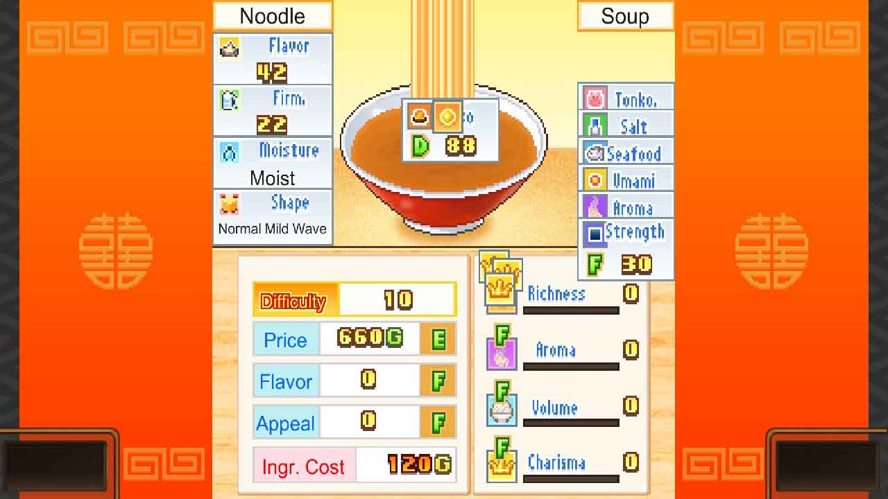 เช่นเดียวกับเกม Kairosoft อื่นๆ มีส่วนผสมบางอย่างที่ได้ผลและส่วนผสมอื่นๆ ที่ไม่ได้ผล เกมนี้มีความลึกมากกว่าเกมก่อนๆ เล็กน้อยเมื่อคุณทำซุปและเชื่อมโยงส่วนผสมที่ลงตัวเข้าด้วยกัน ฉันชอบสนุกกับการทำซุปและดูว่าอะไรได้ผลและอะไรไม่ได้ผล และหวังว่าบะหมี่จะทำงานแบบนี้ (มันใช้ RNG แต่คุณสามารถลดได้นิดหน่อย) นอกจากนี้ หลังจากการแพ้แมตช์ การได้รับรูปปั้นทองสำหรับริบบิ้นอาจเป็นเรื่องยากสักหน่อย หากคุณสูญเสียเซกเตอร์ลูกค้าไปสองสามรายในระหว่างทาง