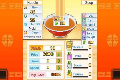 การสร้างชื่อให้ตัวเองทำให้คุณสามารถขยายร้านค้าและเสนอราคาสูงกว่าคู่แข่งเพื่อหาสถานที่และส่วนผสมใหม่ๆ ในเกมนี้ การดำเนินธุรกิจให้ประสบความสำเร็จต้องใช้งานประจำมากมาย เช่น การดึงดูดลูกค้าใหม่ การชนะการแข่งขัน การจัดการพนักงาน และการอัปเกรดสิ่งอำนวยความสะดวก ซึ่งเป็นกุญแจสู่ความสำเร็จ แต่จุดเน้นหลักคือการเตรียมซุปต่างๆและราเมนเอง