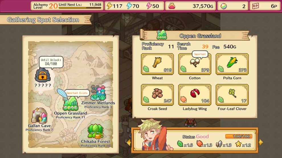 นอกจากนี้ยังมีมินิเกมง่ายๆ ที่คุณเล่นโดยส่งนักผจญภัยไปรวบรวมวัสดุที่ใช้ในการสร้างเสบียงการเล่นแร่แปรธาตุ ในตอนแรกมีนักผจญภัยเพียงคนเดียวเท่านั้น แต่เมื่อคุณช่วยเหลือผู้คนต่าง ๆ และติดตามเรื่องราว ผู้คนจำนวนมากยินดีที่จะช่วยเหลือ Nayc ตัวเอกของเราสามารถเพิ่มขวัญและกำลังใจให้กับนักผจญภัยเหล่านี้ได้ด้วยการให้กำลังใจพวกเขา ซึ่งสิ่งนี้มีผลอย่างมากในการเก็บรวบรวมทรัพยากรให้มากขึ้น คุณทำเช่นนี้เป็นวงและก้าวหน้าเมื่อคุณปลดล็อกการอัปเกรด วัตถุดิบใหม่ และสูตรการเล่นแร่แปรธาตุใหม่ มีความคิดเห็นที่สามารถให้กลยุทธ์ที่เหมาะสม แต่ก็ไม่ซับซ้อนและจำเป็นมากนัก