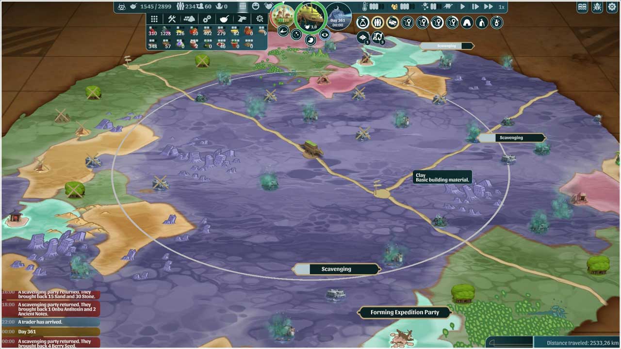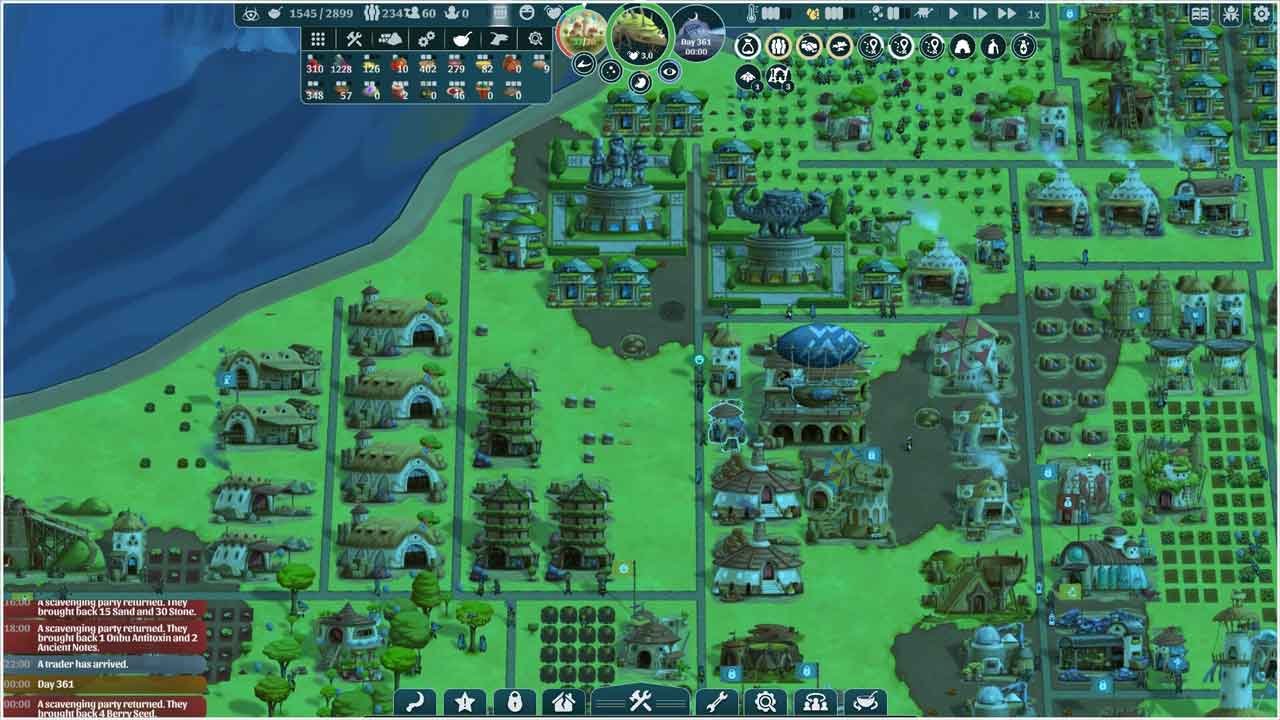 ถึงแม้ว่าอินเทอร์เฟซของเกมจะดูสะอาดตาและตรงไปตรงมา แต่ผมหวังว่าจะมีตัวเลือก “ขั้นสูง” ที่ให้ข้อมูลเชิงลึกเกี่ยวกับข้อมูลในอดีตเกี่ยวกับการผลิตและการใช้ทรัพยากรได้มากขึ้น ปัจจุบันคุณสามารถดูการบริโภค/การผลิตอาหารทั้งหมดของคุณในช่วง 24 ชั่วโมงที่ผ่านมา รวมถึงจำนวนทรัพยากรที่ “สำรองไว้” ในปัจจุบันได้ แต่แค่นั้นก็พอแล้ว ผมรู้สึกว่าการที่ไม่มีองค์ประกอบ UI เฉพาะสำหรับการผลิต/การใช้น้ำนั้นเป็นความผิดพลาดอย่างมาก ในทำนองเดียวกัน ผมคิดว่าการมีข้อมูลเพิ่มเติมเกี่ยวกับระยะเวลาหรือกลไกเฉพาะในการรักษาชาวบ้านที่ติดยาพิษจะเป็นประโยชน์ เกมระบุว่าชาวบ้านจะขอความช่วยเหลือจากแพทย์โดยอัตโนมัติ แต่ผมพบว่าแม้จะมีสถานีพยาบาลพร้อมอุปกรณ์ครบครันสองแห่งอยู่สองฝั่งของอาณานิคมของผม ชาวบ้านจำนวนหนึ่งก็ยังคงทำงานต่อไปจนกระทั่งเสียชีวิต โดยหลีกเลี่ยงแพทย์ที่ว่างงาน