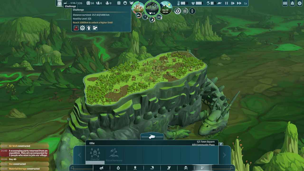 The Wandering Village คือเกมสร้างเมืองแบบแซนด์บ็อกซ์หลังหายนะโลก ที่มีฉากหลังเป็นไดโนเสาร์ยักษ์ชื่อ Onbu ถือเป็นก้าวสำคัญหกขาสู่ทิศทางที่ถูกต้องของแนวเกมประเภทนี้ ซึ่งผมไม่ค่อยเห็นด้วยเท่าไหร่ เกมนี้หยิบยืมแนวคิดมาจาก Against the Storm แนวเกมโร้กไลค์ที่ชนะแนวเกมแนวนี้มาพอสมควร แม้จะไม่ได้หยิบยืมมามากนัก แต่ก็ “พอประมาณ” แนวทางนี้บังคับให้ผู้เล่นต้องสร้างสมดุลระหว่างปัญหาที่สังคมที่ประสบความสำเร็จต้องการขยายออกไปตามธรรมชาติ ซึ่งเป็นเรื่องที่เข้าใจได้ แต่การขยายออกไปนั้นกลับนำไปสู่ปัญหาต่างๆ มากมายที่ขึ้นอยู่กับเวลาและภัยคุกคามต่อการล่มสลายของสังคม