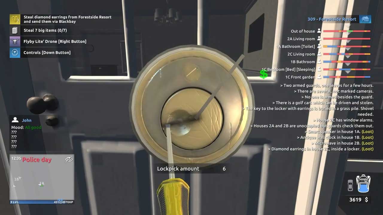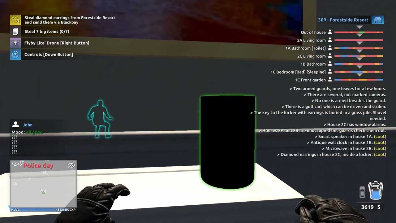 Thief Simulator 2 ใช้โครงสร้างพื้นฐานเดียวกันกับเกมภาคแรก ดังนั้นอาจดูเหมือนว่าคุณจะได้รับประสบการณ์ที่คล้ายคลึงกันมาก แต่โครงสร้างนั้นแตกต่างกันออกไป และฉันคิดว่านั่นส่งผลกระทบต่อผู้เล่นที่มาจาก Thief Sim 1 เมื่อฉันนึกย้อนไปถึงประสบการณ์ Thief Sim 1 ของตัวเอง ฉันนึกถึงการหลบหลีกกล้องวงจรปิดและยาม การสังเกตกิจวัตรประจำวันของผู้เช่าเพื่อให้แน่ใจว่าไม่มีใครได้รับมอบหมายให้อยู่ในห้องที่ฉันอยู่ ณ เวลาที่เหมาะสม (เวลาในเกม) แต่ถ้ามีใครกำลังมา ฉันมักจะต้องกระโดดหลบไปตามมุมต่างๆ เพื่อหลีกเลี่ยงพวกเขา
