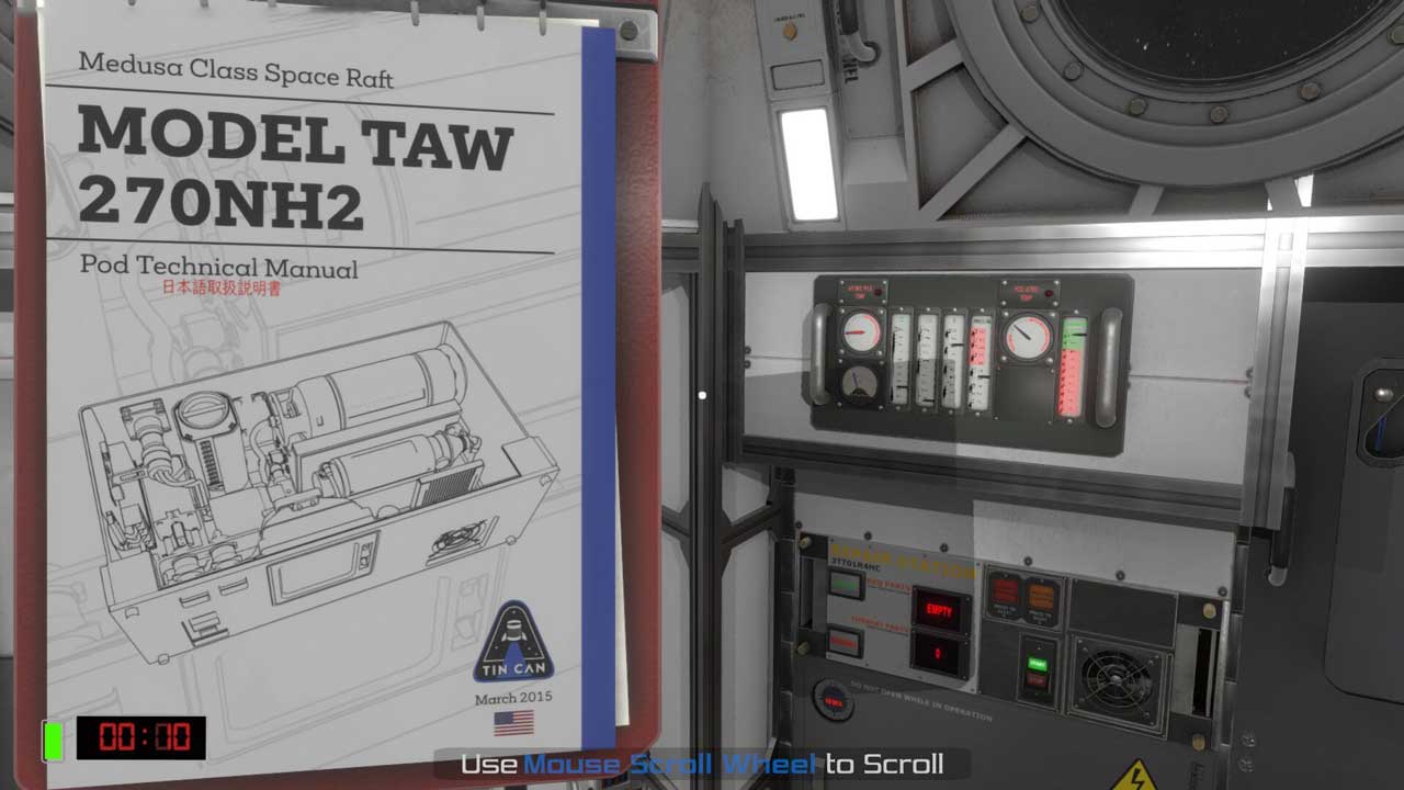 แม้ว่าจะมีคู่มือทางเทคนิคโดยละเอียดที่เกี่ยวข้องกับแคปซูลอวกาศที่อธิบายวิธีจัดการกับสถานการณ์ฉุกเฉินต่างๆ แต่จริงๆ แล้วเมื่อเกิดปัญหาผู้เล่นส่วนใหญ่ยังคงตึงเครียดหรือสับสนและความตึงเครียดนำไปสู่สิ่งนี้ขอให้คุณรีบที่สุด ของเวลาและไม่ทำงานของคุณอย่างสมบูรณ์ โดยทั่วไปแล้วฉันสามารถพูดได้ว่าเกม Tin Can ต้องการความรู้ระดับสูงของคุณในด้านเทคโนโลยียานอวกาศขั้นสูง อุปกรณ์ควบคุมระดับออกซิเจน การชาร์จแบตเตอรี่ที่ให้พลังงานแก่แคปซูล ตัวกรองอากาศที่ต้องทำความสะอาด สิ่งเหล่านี้จำเป็นต้องได้รับการดูแลเมื่อเวลาผ่านไป หากคุณทำสิ่งใดสิ่งหนึ่งผิดไป จะไม่มีโอกาสได้รับโอกาสอีก และคุณจะต้องพบกับความตายอันเจ็บปวด