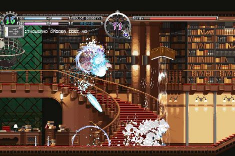 แน่นอนว่าซาคุยะสามารถใช้พลังได้ตลอดเวลา ในตอนแรก มันเป็นเพียงความสามารถในการชะลอเวลาสำหรับทุกสิ่งยกเว้น Sakuya และมีดของเธอ แต่คุณปลดล็อกพลังอย่างรวดเร็วเพื่อหยุดเวลาโดยสิ้นเชิง สร้างไดนามิกใหม่สำหรับการต่อสู้และการไขปริศนา ตัวอย่างเช่น กลไก Time Stop อนุญาตให้คุณ Graze ได้ฟรี แต่คุณดึงมาจากกลุ่มการกู้คืนแยกต่างหากซึ่งจะไม่ฟื้นฟู HP คุณยังสามารถเดินบนน้ำในช่วงเวลาหยุดชั่วคราว หยุดศัตรูและแท่นที่กำลังเคลื่อนที่ และยิงมีดจำนวนมากเพื่อปล่อยเมื่อเวลากลับมาอีกครั้ง กลไกนี้มีความสำคัญมากและเมื่อทำสำเร็จแล้วก็สามารถนำไปใช้ประโยชน์ได้อย่างง่ายดาย