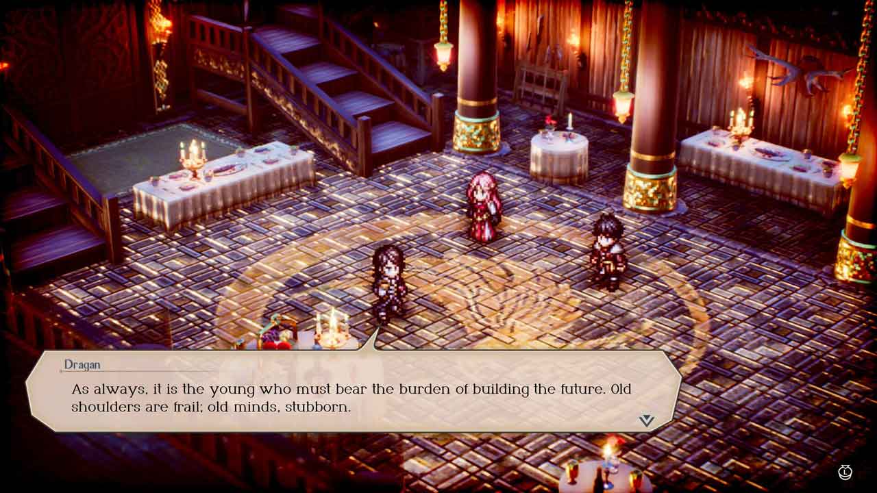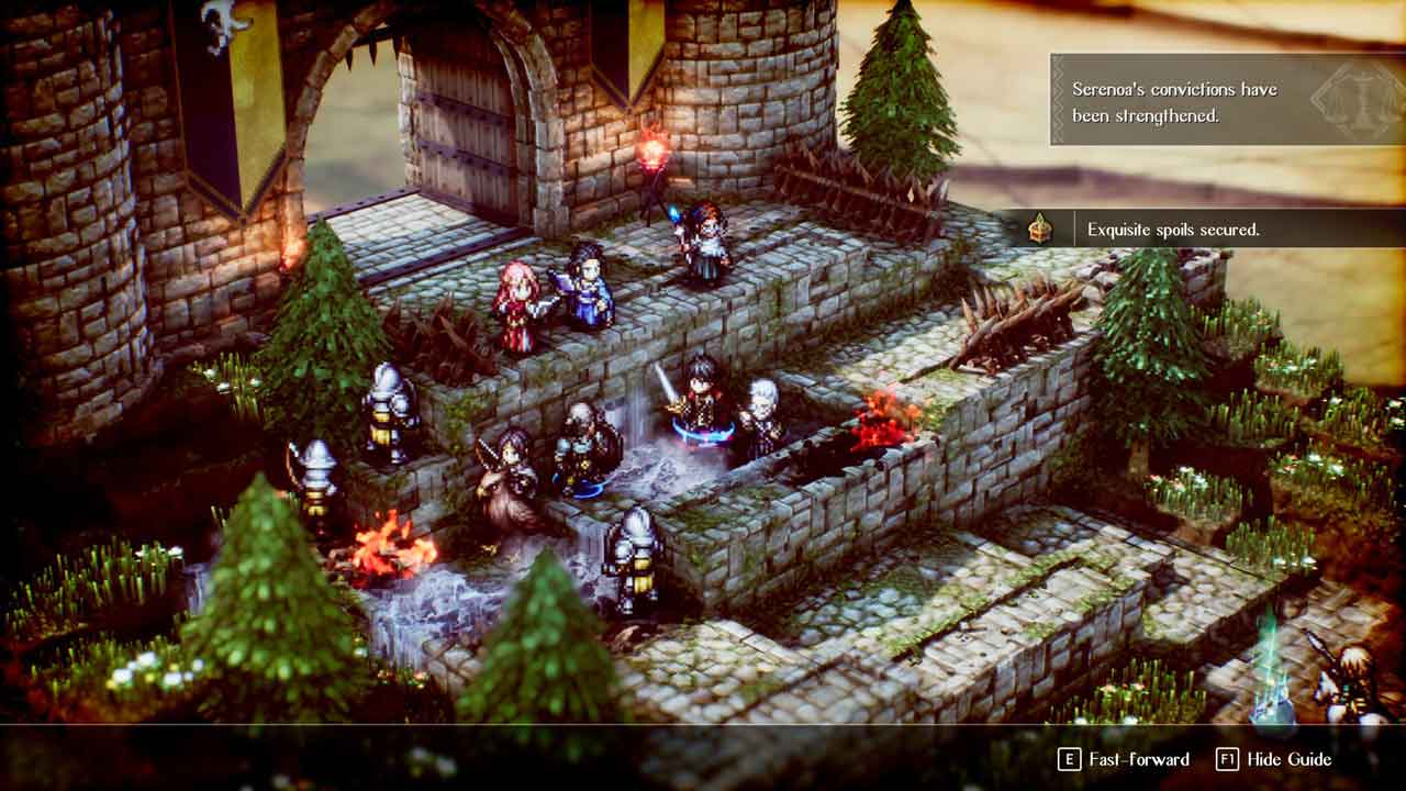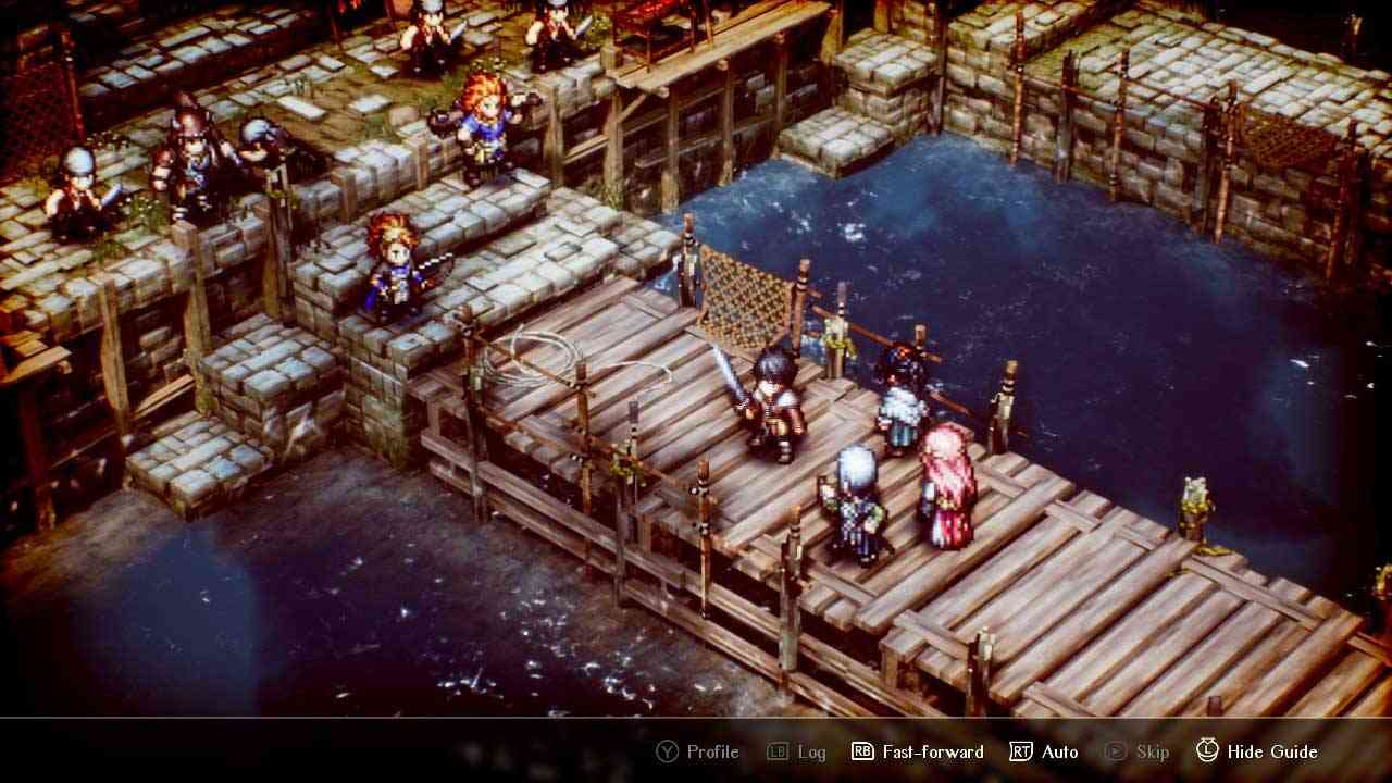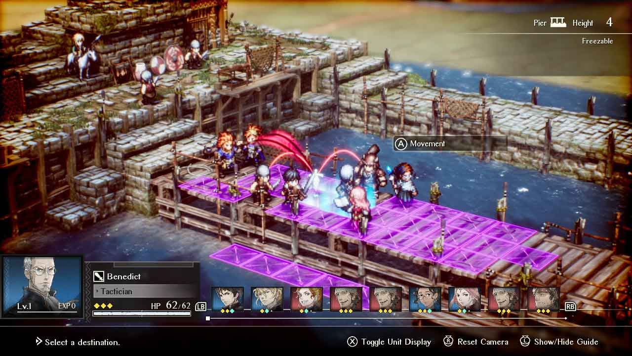ผมรู้สึกพึงพอใจมาก คลาสต่างๆ ถูกจำกัดไว้เฉพาะตัวละคร ดังนั้นจึงไม่มีการปรับแต่งใดๆ นอกจากการอัปเกรดที่คุณเลือกสำหรับแต่ละตัวละคร อย่างไรก็ตาม มีตัวละครให้ลองเล่นอยู่ไม่น้อย อันที่จริง การต่อสู้ของ Triangle Strategy นั้นมีจุดมุ่งหมายที่ชัดเจน ดังนั้นการวางตำแหน่ง ระดับความสูงของภูมิประเทศ และการทำงานร่วมกันของยูนิตจึงมีความสำคัญอย่างมาก ตัวละครแต่ละตัวจะมีความสามารถและบทบาทที่แน่นอน เช่น นักธนูที่เก่งกาจในระดับความสูง นักเวทที่ควบคุมโลกด้วยเวทมนตร์ธาตุ และนักรบระยะประชิดที่ควบคุมพื้นที่ ความสมดุลระหว่างการรุก การป้องกัน และการสนับสนุนสร้างจังหวะทางยุทธวิธีที่สม่ำเสมอ ความผิดพลาดอาจสร้างความเสียหายแต่ก็ยุติธรรม และเอื้อต่อการวางแผนมากกว่าการด้นสด