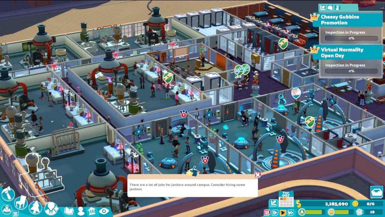 Two Point Campus เป็นเกมกลยุทธ์ที่ท้าทายทักษะการจัดการและการแก้ปัญหาที่หลากหลายของคุณ ในเกมนี้ คุณต้องสร้างมหาวิทยาลัยขนาดใหญ่และจัดการมันอย่างดีที่สุดในขั้นตอนต่อไป คุณต้องสร้างทุกอย่างตั้งแต่เริ่มต้น เลือกประเภทสถาปัตยกรรมของสภาพแวดล้อมในมหาวิทยาลัยด้วยตัวเอง แล้วนึกถึงตำแหน่งของห้อง ขนาด และสิ่งต่างๆ เช่นนั้น บางทีคุณอาจต้องการสร้างศูนย์รวมความบันเทิงหลายแห่งสำหรับนักเรียนของคุณ และบางทีคุณอาจต้องการพัฒนาทักษะของพวกเขาโดยจัดชั้นเรียนหลายชั้นตามความชอบของคุณ