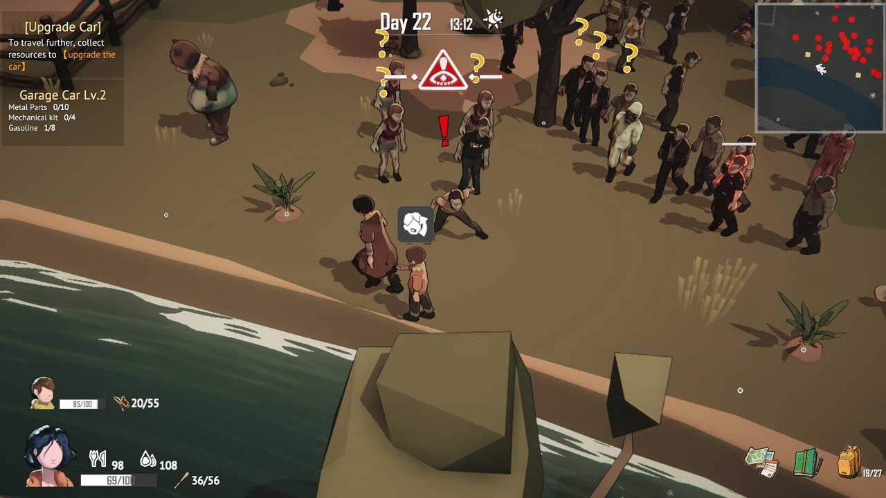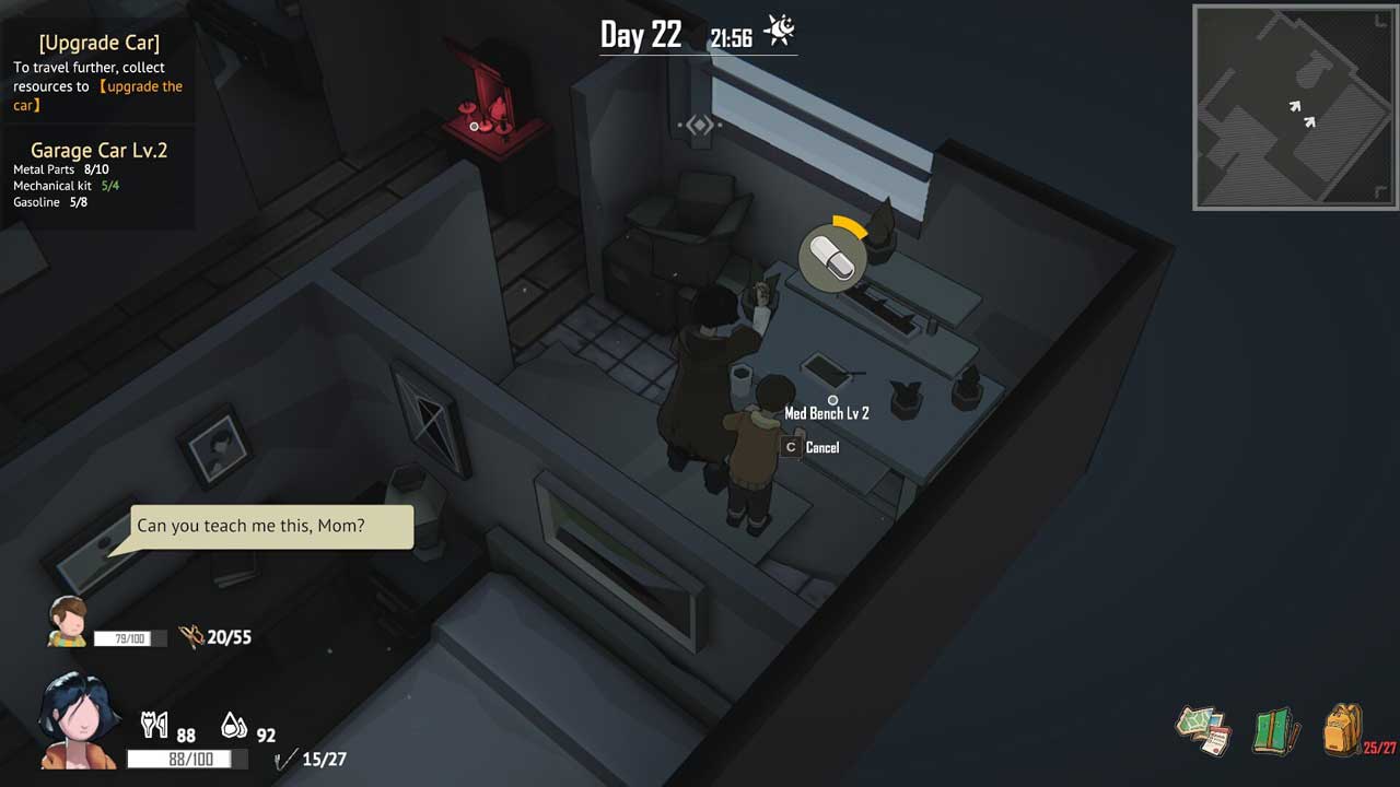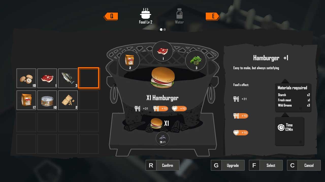 เกมดังกล่าวมีระบบสินค้าคงคลังที่เรียบง่ายซึ่งเน้นไปที่การแจกจ่ายไอเท็มพื้นฐาน อุปกรณ์ที่ไม่มีช่องเฉพาะ และการใช้ไอเท็ม ฉันอยากได้ฟีเจอร์ในการทำลาย/สร้างไอเท็มจากกระเป๋า/สินค้าคงคลังเลย แต่นักพัฒนาไม่ได้ทำเช่นนี้ แต่สร้างรายการเฉพาะที่ใช้งานบนเดสก์ท็อป มีสถานีประดิษฐ์เฉพาะทั้งหมดสี่แห่งสำหรับการใช้งานแยกกันสี่แห่ง – 1. การทำอาหาร, 2. การแยกชิ้นส่วน, 3. สถานียา และ 4. ม้านั่งเครื่องมือ สถานีเฉพาะเหล่านี้จะต้องได้รับการซ่อมแซมก่อน โดยมีไอเท็มที่จำกัดและง่ายต่อการรับ และการประดิษฐ์ก็ไม่ต่างกัน แต่เมื่อคุณอัปเกรดแต่ละสถานี ไอเท็มที่ยากขึ้นจะเริ่มปลดล็อค ซึ่งค่อนข้างลำบากในการเก็บรวบรวม