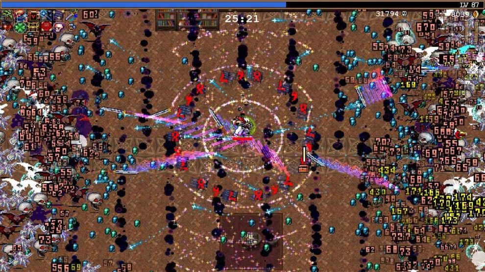 ในแต่ละระดับใหม่ คุณสามารถเลือกสิ่งใหม่ได้ – อาวุธหรือทักษะแบบพาสซีฟ นอกจากนั้น คุณยังทำลายสิ่งของต่าง ๆ เพื่อรับเงินและไอเทมการรักษาหรือไอเทมที่มีพลังต่าง ๆ เช่น เวลาแช่แข็ง หรือกำจัดศัตรูทุกตัวบนหน้าจอ มีตัวละครมากมายและแต่ละตัวก็มีอาวุธหลัก จุดแข็งและจุดอ่อนของตัวเอง ตัวละครแต่ละตัวสามารถรับและเพิ่มระดับอาวุธและไอเท็มได้หกชิ้นในแต่ละด่าน เมื่อช่องเหล่านั้นเต็มแล้ว จะไม่มีการดรอปไอเท็มใหม่ และคุณจะต้องเพิ่มเลเวลพวกมัน ดังนั้นสิ่งสำคัญคือต้องวางกลยุทธ์ตั้งแต่เนิ่นๆ ว่าคุณจะเข้าใกล้ฉากการต่อสู้อย่างไร