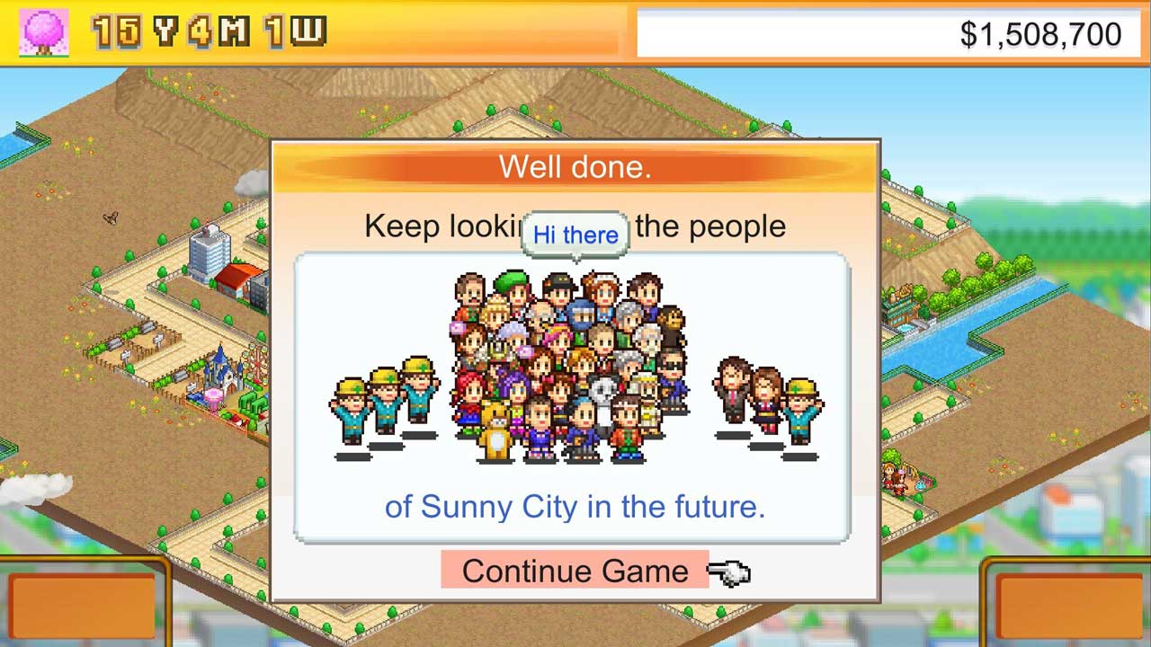 คุณจะสร้างสรรค์พื้นที่อยู่อาศัย ร้านอาหาร ร้านสะดวกซื้อประเภทต่างๆ เมื่อเวลาผ่านไป คุณยังได้จัดพื้นที่ผ่อนคลาย เช่น สวนสาธารณะ ศาลเจ้า และการวางแผนเทศกาลเพื่อสร้างความสุข โดยการปลดล็อคอาคารใหม่หรือโปรเจ็กต์ต่าง ๆ สามารถทำได้ผ่านระบบการวิจัยของเกมซึ่งอิงตามจำนวนประชากรของเมือง เป้าหมายหลักของเกมคือการทำให้ผู้คนได้อาศัยอยู่ในชุมชนให้ได้มากที่สุดเท่าที่จะเป็นไปได้จนกว่าจะกลายเป็นหนึ่งในเมืองที่เจริญรุ่งเรืองที่สุดในญี่ปุ่น
