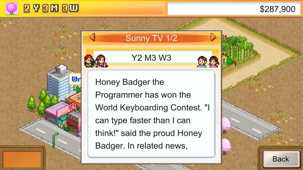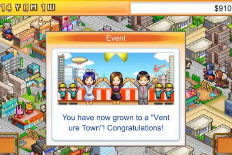 หากคุณคุ้นเคยกับผลิตภัณฑ์สำหรับนักพัฒนาอื่นๆ ของ Kairosoft คุณจะต้องคุ้นเคยกับ Venture Towns ด้วยเช่นกัน เนื่องจากชื่อของบริษัทส่วนใหญ่ใช้สไตล์และรูปแบบเดียวกันและมีเพียงเนื้อหาที่แตกต่างกันเท่านั้น แม้ว่าฉันจะชอบเกมของพวกเขามากมาย แต่เกมนี้ก็น่าสับสนและน่าเบื่อเกินกว่าจะเล่นให้จบ เมื่อคุณค้นพบการผสมผสานใหม่ๆ และเรียนรู้วิธีสร้างเมืองที่ประสบความสำเร็จ คุณจะไม่สามารถเล่นซ้ำได้จริงๆ