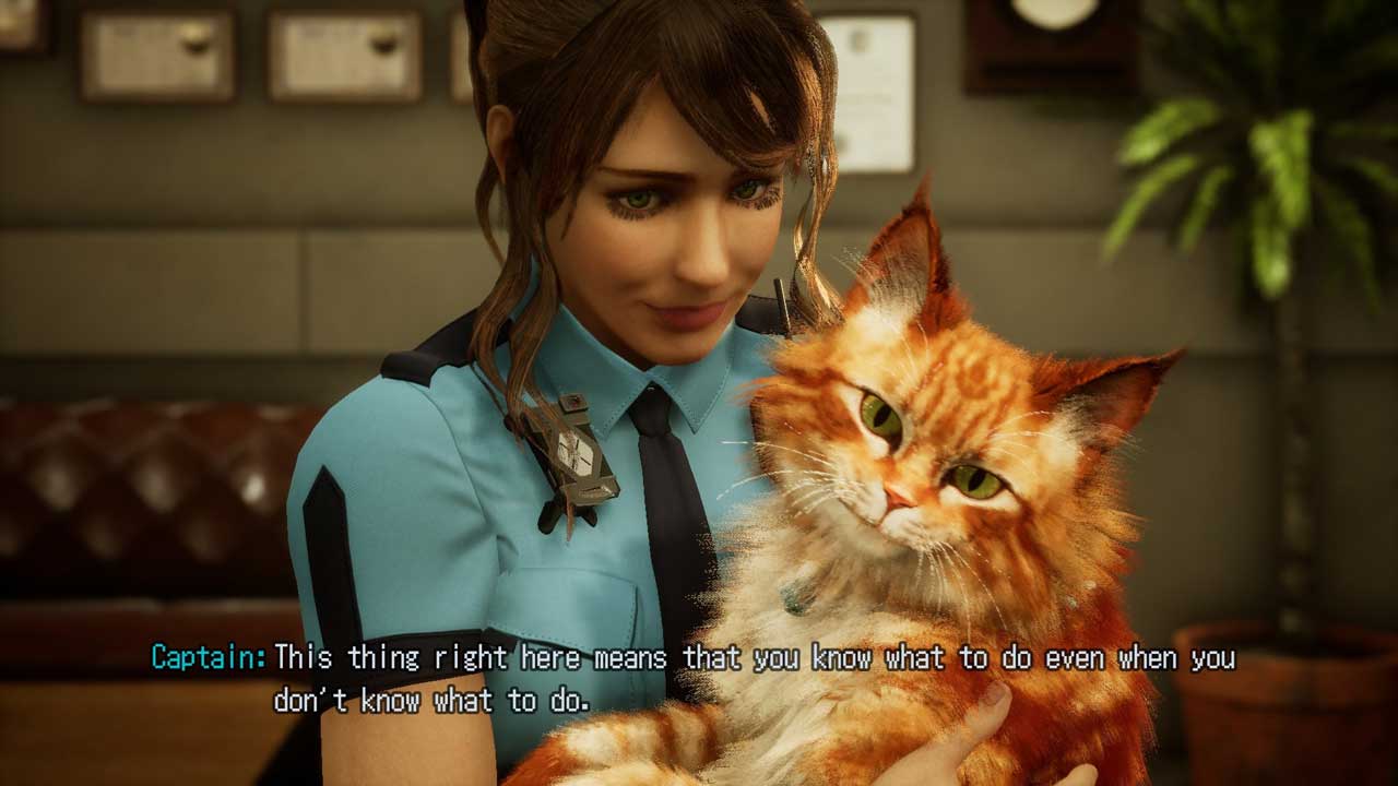 ในระหว่างแต่ละภารกิจ คุณจะพบว่าตัวเองอยู่ที่สถานีตำรวจ ซึ่งคุณสามารถพูดคุยกับ NPC และเล่นมินิเกมต่างๆ ได้ เพื่อนร่วมงานของคุณมีบุคลิกที่แห้งแล้งและว่างเปล่าซึ่งสูญเสียความสดใหม่และความน่าดึงดูดเมื่อเทียบกับโครงสร้างตัวละครที่แสดงในเกมอย่าง Astral Chain มินิเกมให้ความรู้สึกไม่เป็นผู้ใหญ่ และยังมีเครื่องทดสอบทักษะที่คุณปลดล็อกไอเท็มและรูปปั้นพิเศษ ฉันขอขอบคุณตุ๊กตาที่จัดแสดงอยู่บนโต๊ะของแฮนนาห์เมื่อคุณได้มาแต่ละชิ้น เป็นรายละเอียดเล็กๆ น้อยๆ แบบนี้ที่ฉันชอบเห็นในวิดีโอเกม