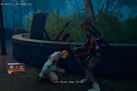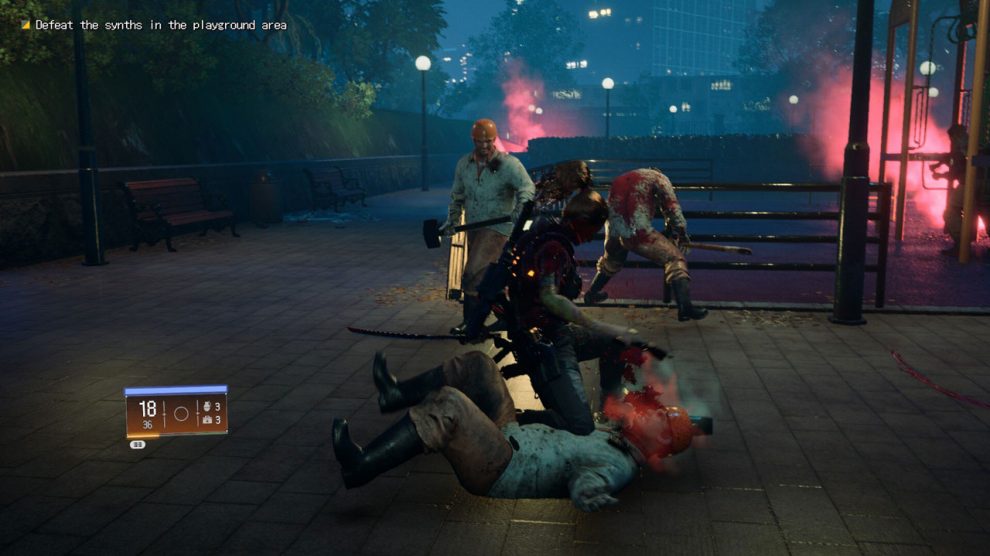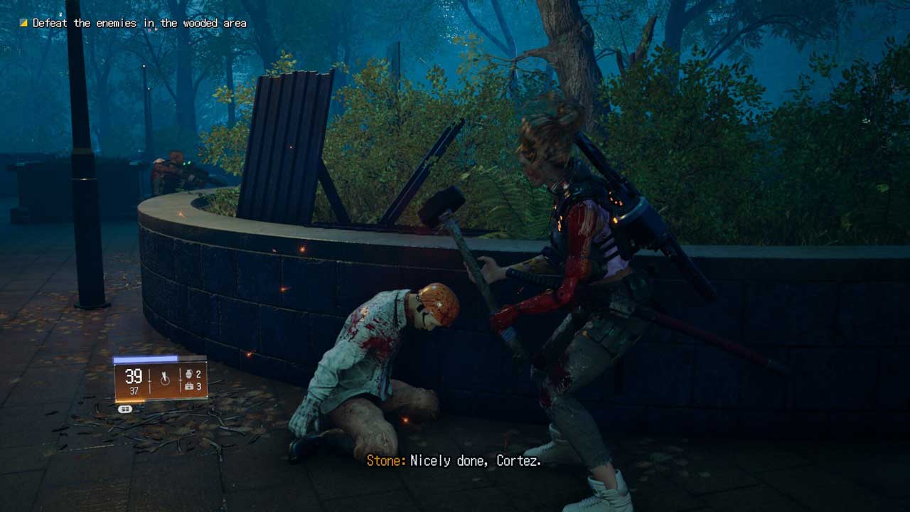เกมนี้มีหนึ่งในเนื้อเรื่องที่แย่ที่สุดที่ฉันเคยเห็นในวิดีโอเกม. คุณเล่นเป็นฮันนาห์ สโตน กัปตันทีมตำรวจชั้นยอดที่มีฉากเป็นอนาคตของฮ่องกง ที่ซึ่งการเพาะกายและการต่อสู้ด้วยดาบเป็นเทรนด์ใหม่ในการต่อสู้กับศัตรู และนั่นคือทั้งหมดที่คุณต้องรู้ เรื่องราวของเกมเป็นระเบียบสมบูรณ์ ในความคิดของฉัน ไม่มีโครงเรื่องจริงให้พูดถึง เป็นเพียงชุดของเหตุการณ์และภารกิจที่ไม่เกี่ยวข้องกัน สิ่งเหล่านี้เกิดขึ้นโดยไม่มีความเชื่อมโยงหรือจุดประสงค์ที่แท้จริง. ฮันนาเข้าร่วมกับสมาชิกอีกสามคนในกลุ่มชื่อ “Team Zombies” หนึ่งในคนเหล่านี้เรียกว่า Doc ซึ่งใช้ชีวิตตามชื่อของเขาโดยเสนอความสามารถในการชุบชีวิตผู้เล่นหลังจากที่สุขภาพหมดลง สมาชิกอีกคนในปาร์ตี้ของคุณคือ Cortex ผู้ซึ่งสามารถทำให้ศัตรูซวนเซได้ ทำให้ Hana สามารถจัดการพวกมันได้ด้วยการตบท้าย คนสุดท้ายในทีมของคุณคือ Herzog ซึ่งบางครั้งก็ทำลายทหารราบด้วยการยิงที่ศีรษะเพียงนัดเดียว