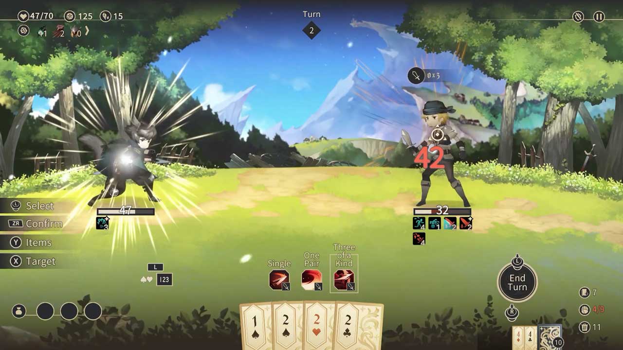 การต่อสู้ของเกมจะจบลงโดยที่คุณต้องทำการโจมตีตามมือโป๊กเกอร์ หลังจากชนะการต่อสู้ ทักษะใหม่จะปลดล็อกหรือคุณสามารถอัปเกรดทักษะปัจจุบันของคุณได้ นอกจากนี้ ในการผจญภัยที่คุณไม่สามารถทำได้หากไม่มีอุปกรณ์เสริมและวัสดุสิ้นเปลือง พวกมันจะได้รับจากกิจกรรมและด่านต่างๆ ให้สำเร็จ เอาชนะสัตว์ประหลาดที่แข็งแกร่ง และหาซื้อได้จากร้านค้าในเมือง หลังจากจบแต่ละด่านแล้ว เราจะกลับไปที่เมืองเพื่อรักษา อัพเกรดทักษะ ซื้อของ และพูดคุยกับผู้คน หากคุณเป็นเหมือนฉันและไม่รู้จักมือโป๊กเกอร์จริงๆ ไม่ต้องกังวล! คุณไม่จำเป็นต้องรู้จักพวกเขาเพื่อเล่นเกมนี้ หากมีอะไร คุณก็จะได้เรียนรู้ในที่สุดว่าพวกเขาคืออะไร เพราะเกมนี้มีส่วนการสอนที่ครอบคลุมและเป็นประโยชน์มาก ฉันสนุกกับการเล่นเกมมาก!